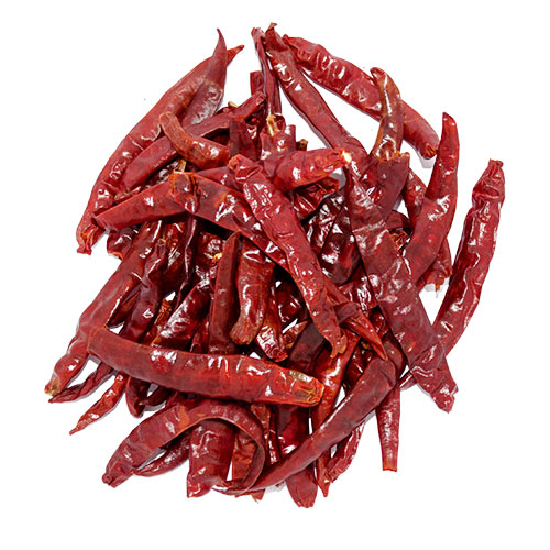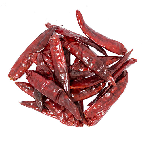 Popularly known as S17, majorly grown in Guntur and Warangal region of Andhra Pradesh, Teja enjoys one of the major export markets. It is small in size, non-wrinkled, normal seed content and bright red and highly pungent and skin type is thin. This S7 variet is hottest commercially available (& viable) chilli from India. This variety is majorly explored for its pungency and adds hot peppery flavor to many Indian Cuisine like Indian Pickles, Chat Masala, Chicken powder, Curry powder. Also used for extraction and derivation of capsaicin.