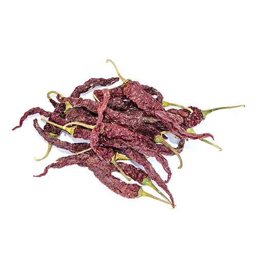 Popularly known as Relish Beyadgi, is one of the most famous varieties of chilli grown in Indian State of Karnataka. It has wrinkled skin that is orange red in color. It is mildly hot and orange red color to the food. Used in extraction of Oleoresin.